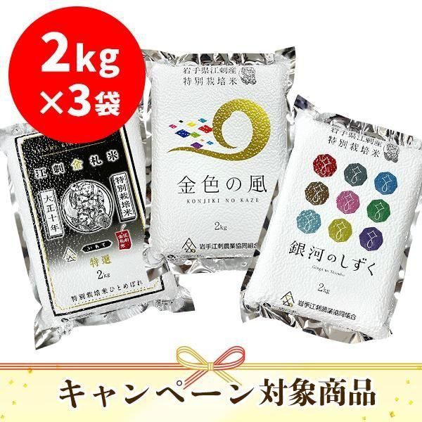 岩手県江刺地域限定で収穫された江刺金札米『ひとめぼれ』特選米と、特別栽培米の『金色の風』『銀河のしずく』をセットにした、このキャンペーン期間ならではのセット商品です。